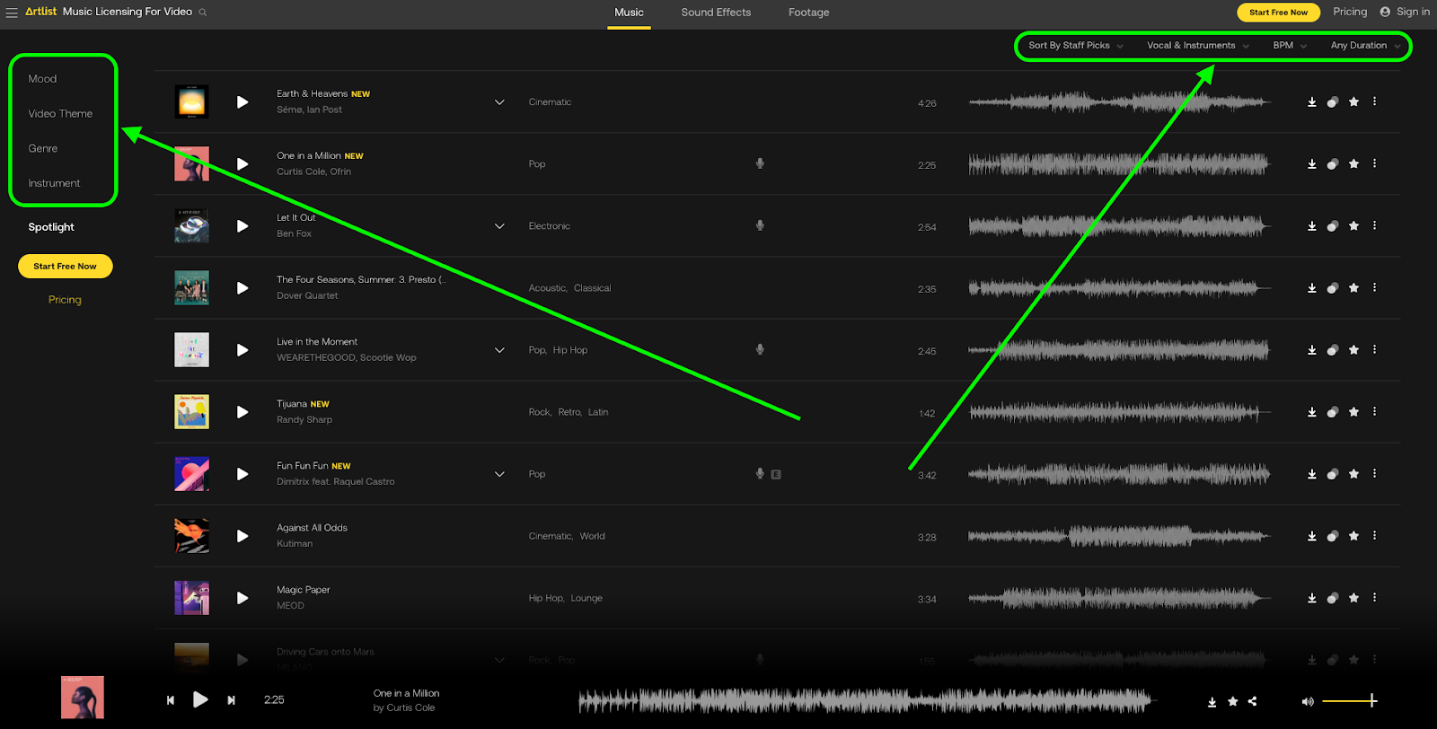 Artlist was designed with creators like you in mind, so we’ve created filters to help you find the perfect song.